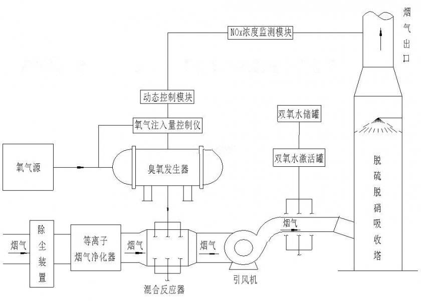 電廠脫硝工藝一般采用SCR工藝,在一定溫度和催化作用下,利用加氨還原的方法把氮氧化物還原為氮氣。臭氧可以利用其強氧化性把不可溶的低價態的氮氧化物氧化成可溶的高價態的氮氧化物,再利用堿化吸收洗滌工藝清除掉。臭氧煙氣脫硝不需要增高煙氣的溫度;不使用氨等還原劑;在NOx含量、煙氣量不穩定條件下,控制靈活;維持90%以上的脫除率;同時處理重金屬;可配合同時實現脫硫。